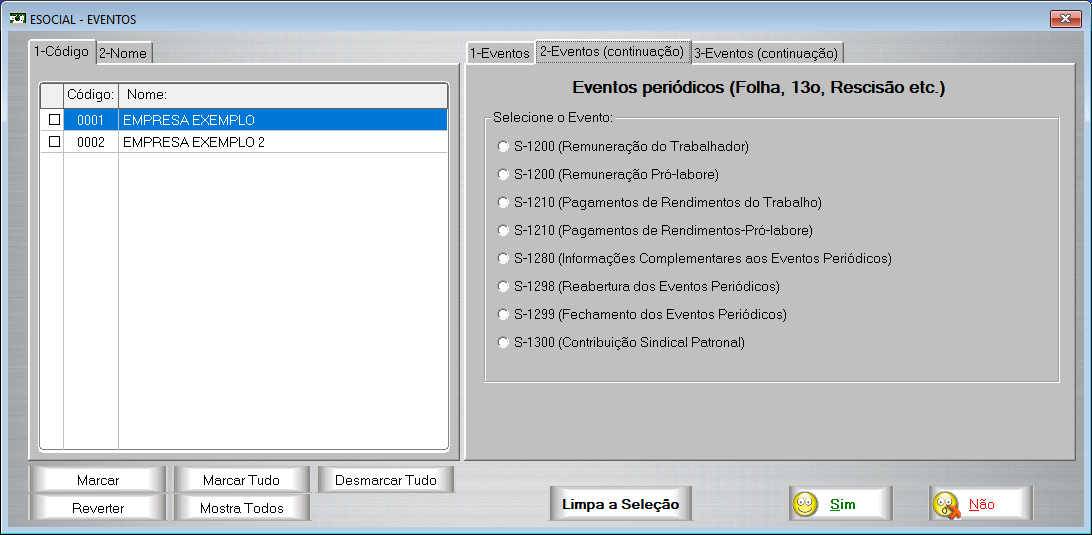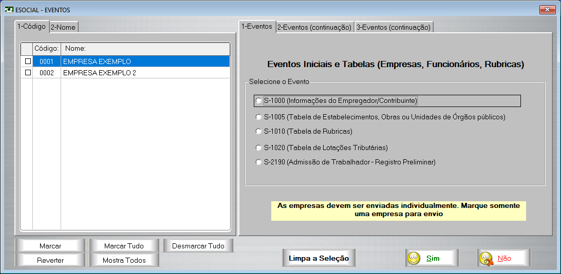 Com a nossa Folha de Pagamento-DQL você vai poder enviar os eventos do eSocial sem pagar mais nada por isso. Enquanto outros fornecedores incluem o eSocial por um custo extra, para nós o eSocial é apenas mais uma rotina. Abaixo as telas de envio dos eventos pelo sistema já usando a versão S1.0: